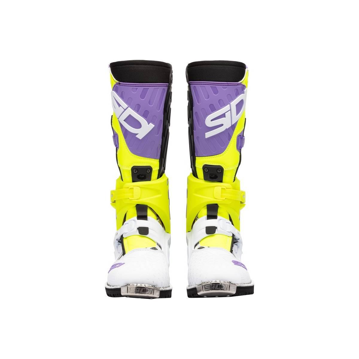 Ofrece la protección premium de SIDI con solo 1700 g (talla 43). Un exoesqueleto reforzado con fibra de vidrio garantiza soporte y ligereza, mientras que la suela de goma cosida, inspirada en botas de trial, proporciona un agarre inigualable en las estriberas y el terreno.