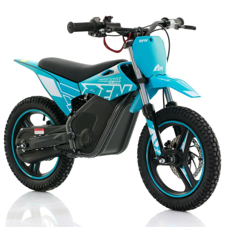 La minimoto eléctrica RFN Warrior SX-E500 500W es la evolución natural de la gama infantil RFN. Diseñada para pequeños pilotos que ya dominan las minimotos de iniciación, esta versión ofrece más potencia, más autonomía y un comportamiento off-road superior.