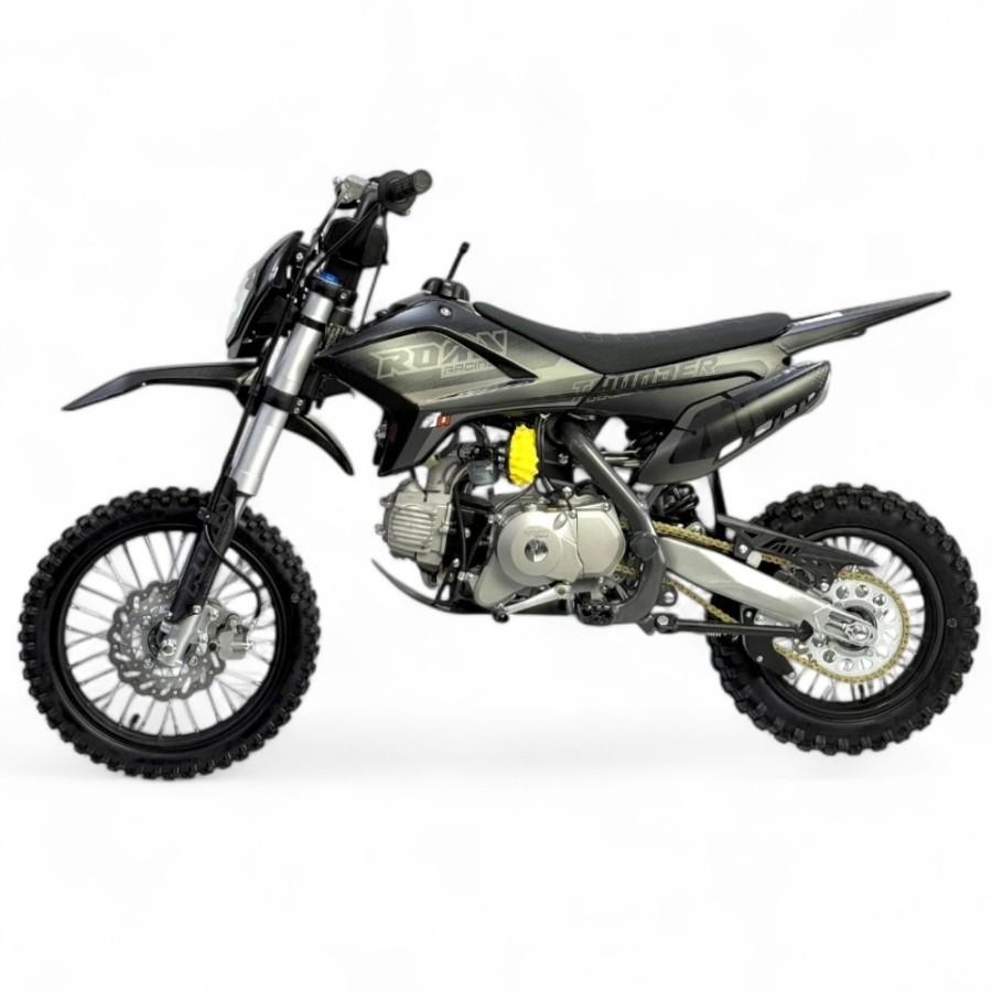 Pit bike 110cc semi-automático, 4 marchas sin embrague. Facilidad para encenderla a botón o a pedal. Gran estabilidad y maniobrabilidad con sus ruedas 14/12"