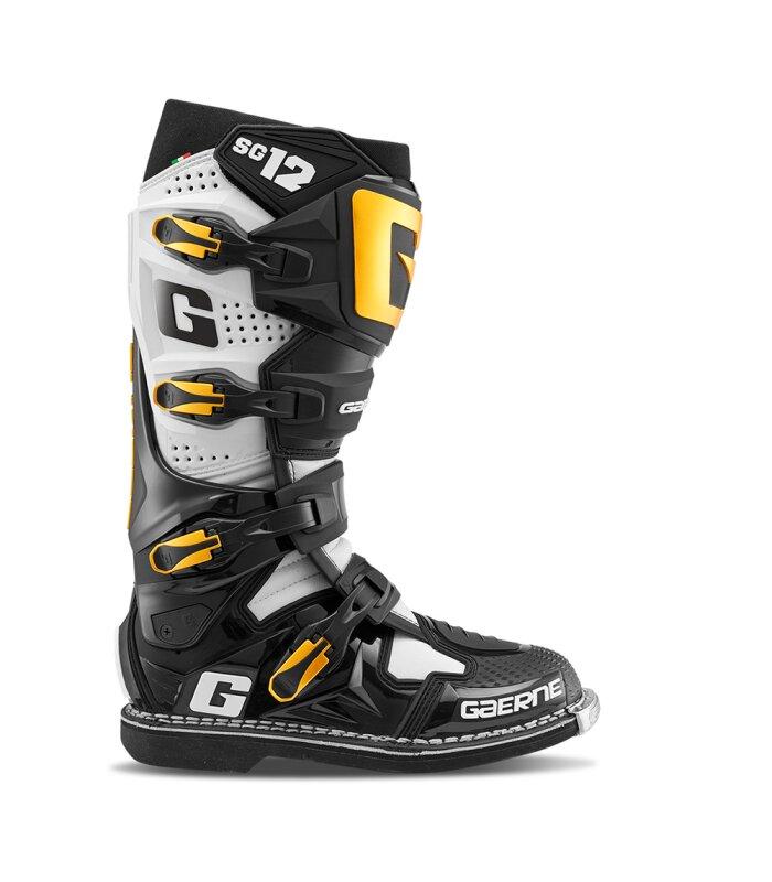 Las botas Gaerne SG-12 Luxe en color negro y dorada, son la elección perfecta para los entusiastas del motocross que buscan rendimiento, comodidad y estilo.