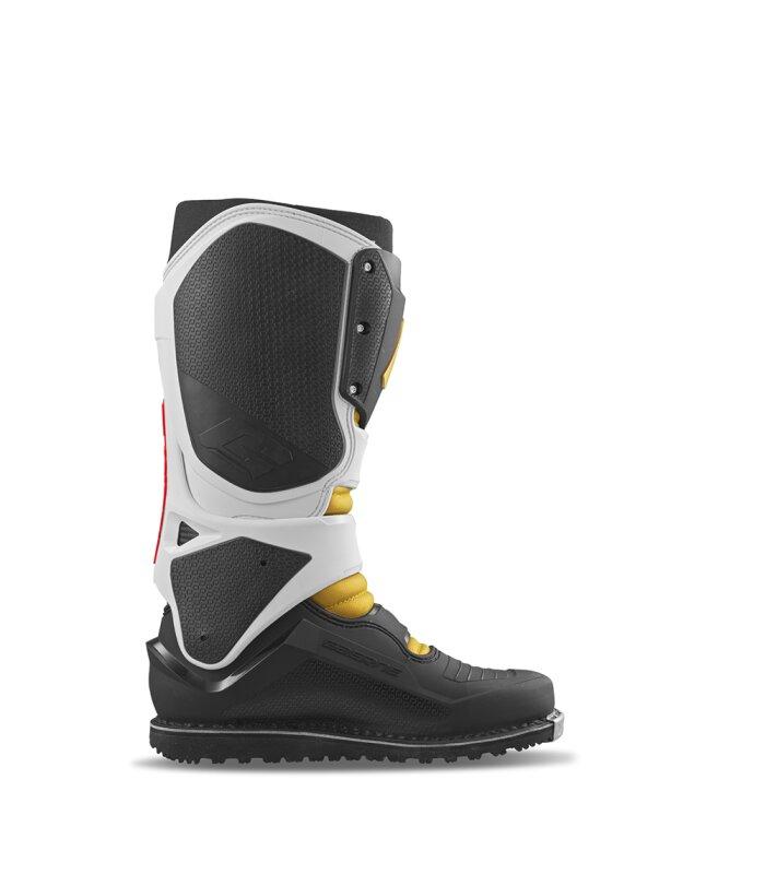 La parte interior de la caña de la bota está equipada con elementos Grip Guard 1.0 con un compuesto desarrollado en colaboración con pilotos profesionales... Esto mejora la protección y optimiza el coeficiente de fricción para una mejor sensación durante la conducción. La suela está equipada con inserciones de doble densidad, una que ofrece un agarre óptimo al pedal y una durabilidad sin precedentes y la otra que proporciona amortiguación y tracción al caminar.