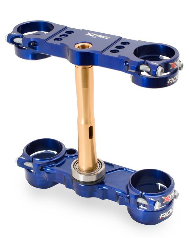 - El sistema ROCS (Revolutionary Opposing Clamp System) ha sido uno de los desarrollos más espectaculares y elaborados de XTRIG en los últimos años. Las ventajas de este sistema en comparación con una abrazadera triple convencional son la menor deformación de los montantes de la horquilla en la zona de apriete, que tiene un efecto notable en la respuesta de la horquilla, pero también el diseño con las dos abrazaderas opuestas, que garantizan más seguridad contra la torsión de la horquilla por el efecto de autobloqueo. Otra ventaja es el hecho de que los tornillos de apriete no se influyen entre sí, por lo que se puede conseguir un par de apriete más preciso. Como no hay material entre los tornillos de apriete, las abrazaderas triples ROCS también tienen un peso inferior en comparación.