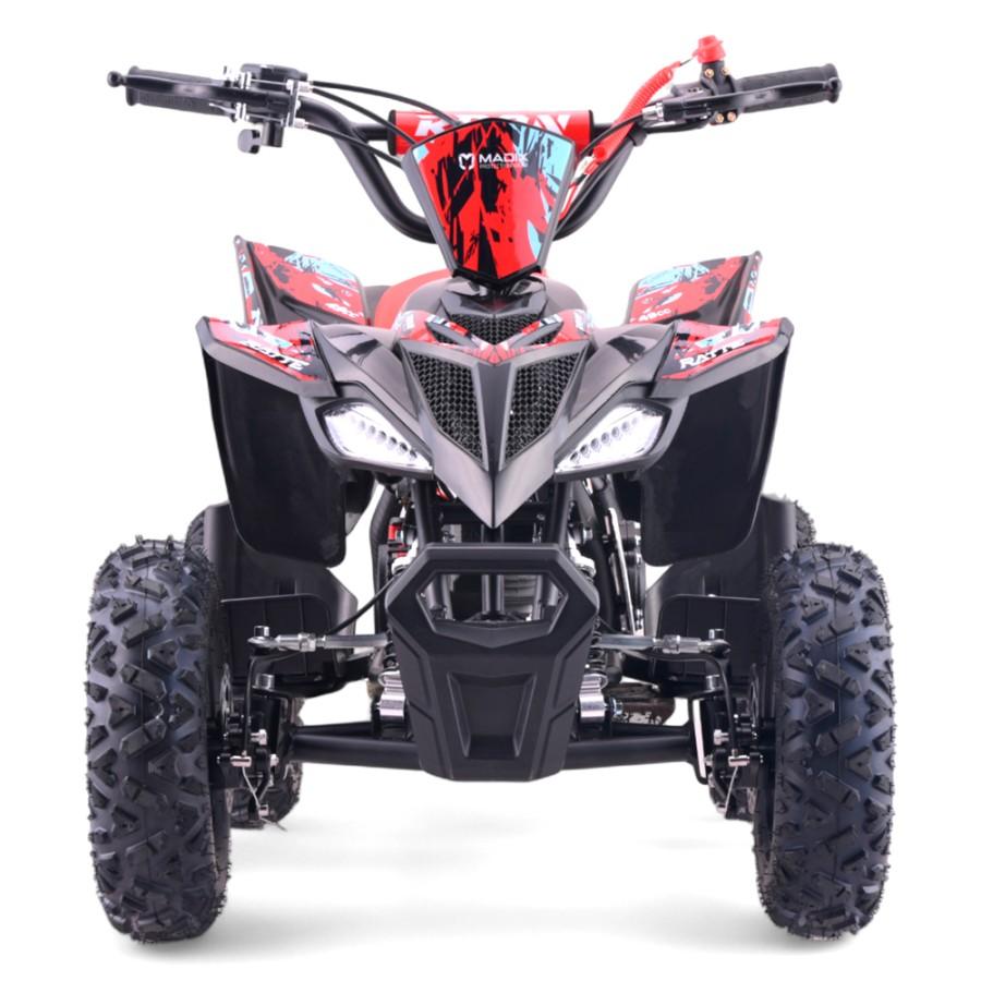 El motor monocilindro de 2 tiempos del Roan Ratte es otro punto fuerte de este vehículo. Con una potencia máxima de 4.5 CV y una cilindrada de 49cc, este mini quad está diseñado para ofrecer un alto rendimiento. Su velocidad máxima es de hasta 45 km/h. A pesar de su tamaño compacto, el Ratte no escatima en potencia y velocidad. Sin embargo también cuenta con otro dispositivo de seguridad como el limitador de velocidad.