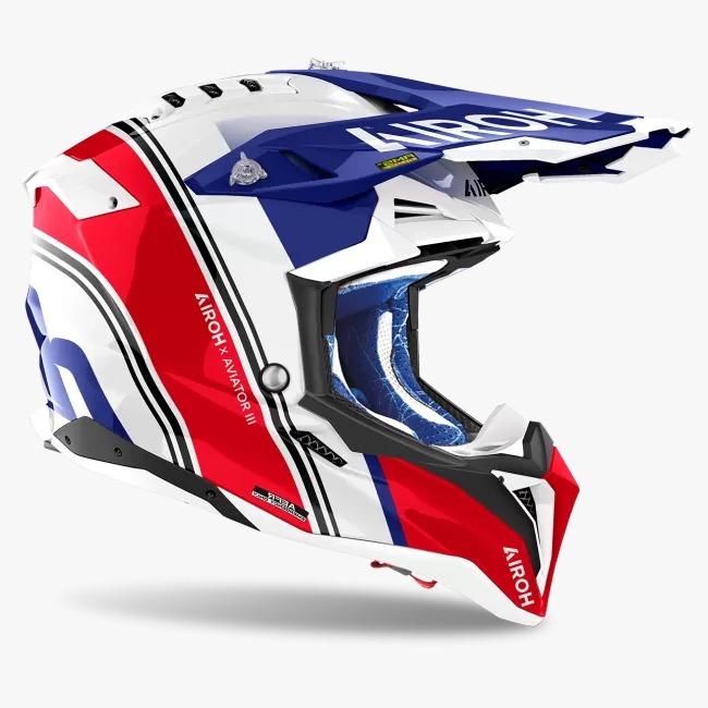 El casco off-road Airoh Aviator 3 dejando atrás a todos. Una vez más. Lo difícil no es ganar una vez, sino seguir haciéndolo. Aviator III sube el listón y redefine los estándares de un casco todoterreno. La calota, disponible en una versión de carbono (Carbon 3K) exclusivamente para el gráfico Carbon, está hecha de fibra noble (HPC Carbon) para las demás variantes gráficas. La calota exterior está disponible en cuatro tallas para ambas versiones y se diseñó utilizando el túnel de viento de Airoh para optimizar el diseño y el rendimiento. Por lo tanto, se prestó especial atención a la aerodinámica, con el objetivo de que el casco fuera estable incluso a altas velocidades, y a la termodinámica, para optimizar la termorregulación. La destreza tecnológica de Airoh se condensa en este nuevo producto, que incorpora los sistemas AMS2 Plus (Airoh Multiaction Safety System Plus), AEFR (Airoh Emergency Fast Release) y AMLS (Airoh Magnetic Lining System), que ha evolucionado para incluir almohadillas magnéticas para las mejillas. Las ocho tomas de aire y los alerones con extractores integrados hacen que el Aviator III sea cómodo de llevar incluso en las condiciones más extremas, al igual que el innovador AHS (Sistema de Hidratación Airoh) integrado en el EPS. Aviator III. Sin límites.