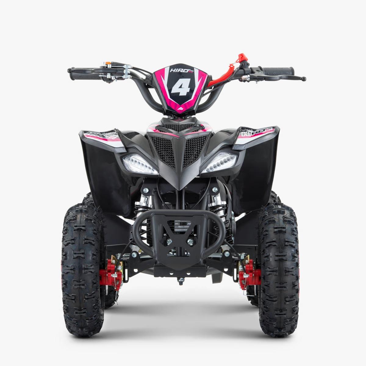 Este quad de bolsillo está equipado con un motor automático de 2 tiempos y 49 cc, un sistema de arranque fácil, un tirador de aluminio reforzado y un embrague de 2 muelles para mayor durabilidad.