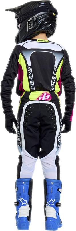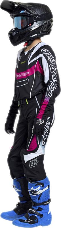 Un kit motocross es tan bueno como sus componentes. Ligero y transpirable, el SE Pro combina los elementos necesarios para lograr el equilibrio perfecto entre máximo rendimiento y durabilidad prolongada. Los materiales Dura-Mesh y Dura-Tech de Troy Lee Designs ofrecen ventilación y resistencia en las zonas clave. El corte para competición (Race Fit) del SE Pro queda ligeramente suelto sobre el cuerpo para brindar un ajuste holgado, sin restricciones y más cómodo. La fórmula del éxito empieza con el SE Pro.