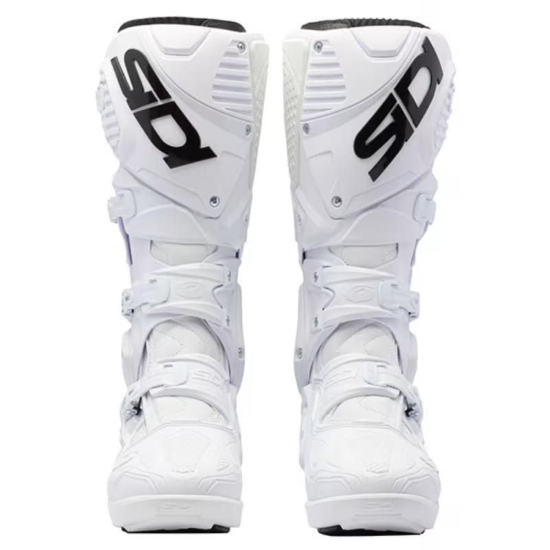 • El sistema exclusivo y patentado por SIDI, permite ajustar el diámetro de la CROSFIRE 3 SRS en la zona del gemelo hasta 3cm. Este sistema, juntamente con las tiras de ajuste más largas, representan un avance en términos de comodidad. La parte interior de la bota está realizada con 2 materiales distintos; uno en plástico rígido para ofrecer soporte a la bota y otro resistente al calor para proteger la pierna del piloto del calor que desprende el escape. Todos los componentes del sistema son reemplazables