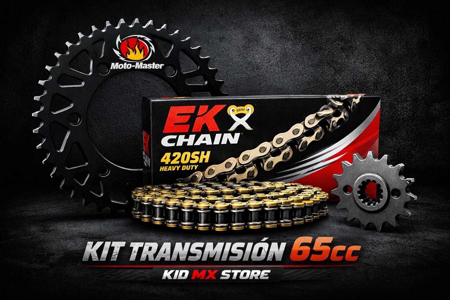 Este kit incluye piñón de ataque, corona y cadena de alta resistencia, fabricados con materiales de primera calidad que garantizan una larga vida útil incluso en condiciones extremas de motocross.